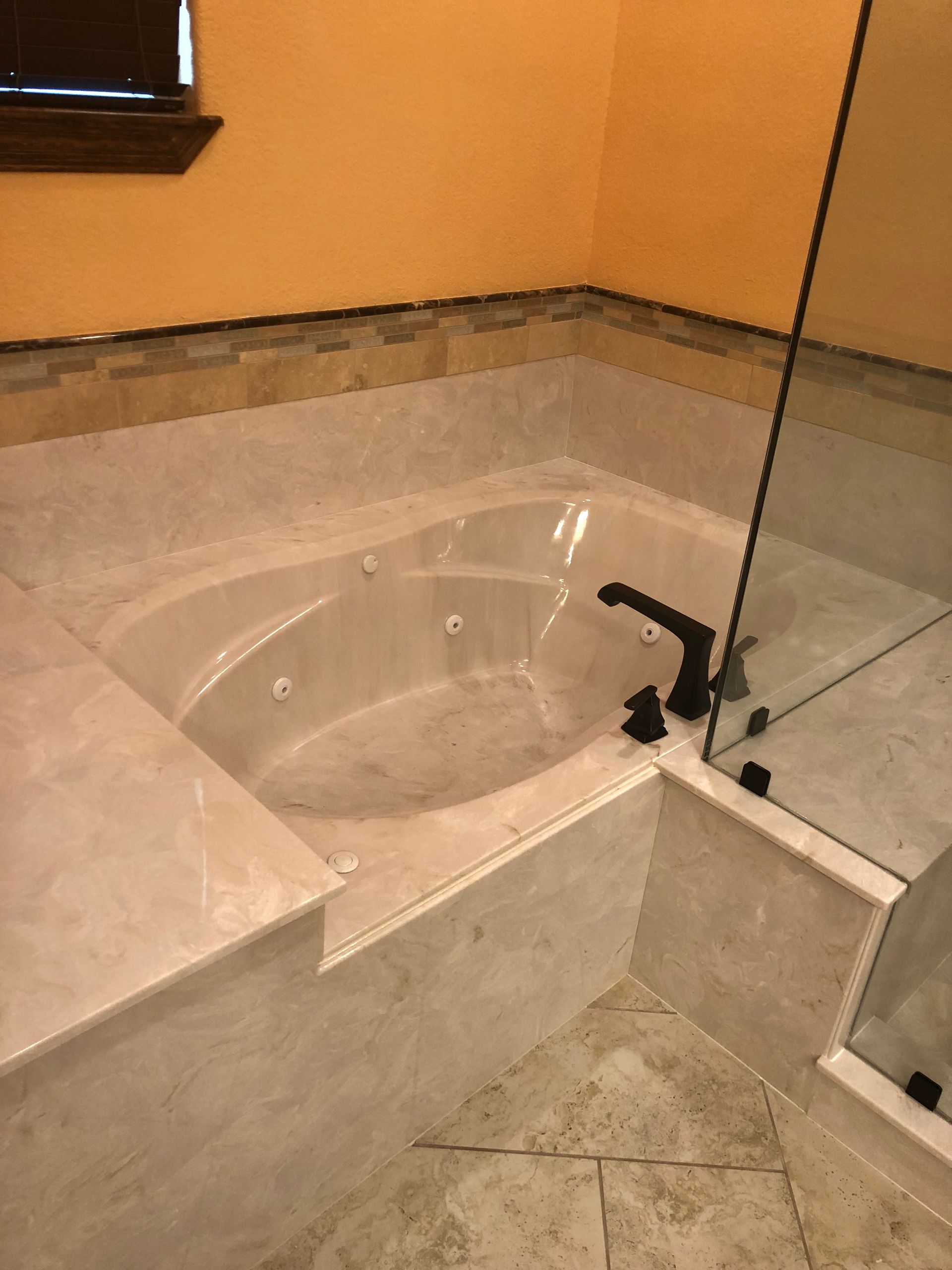 Our cultured marble bathtubs can be enhanced with our in house WATER JET Jacuzzi add on!